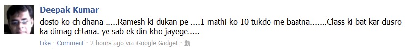 But I know who he is, big one, hostel charm and smile with lots of fun and entertaining thoughts in his mind Bank, full of amazing mind boggling jokes, Its Deepak Kumar.